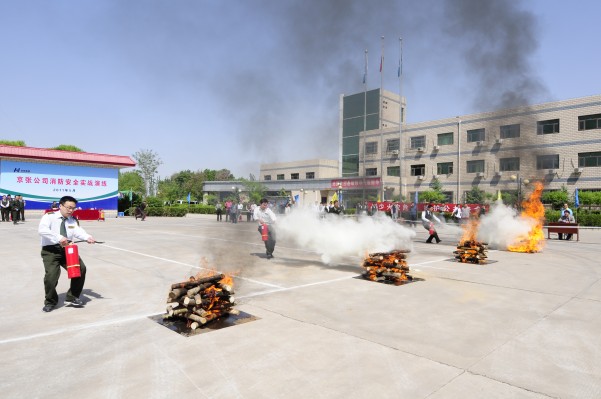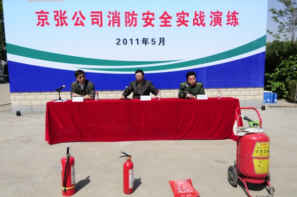上午10時整,演練活動總指揮、劉建民總經(jīng)理宣布演練正式開始。演練活動副總指揮、葉成海副總經(jīng)理強調(diào)了此次演練的目的和意義。下花園區(qū)消防大隊長蔡鳳武應邀對不同滅火器材的操作方法進行了現(xiàn)場講解和指導。