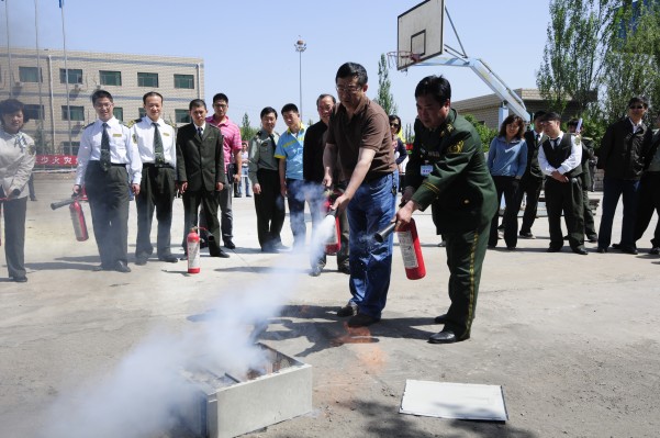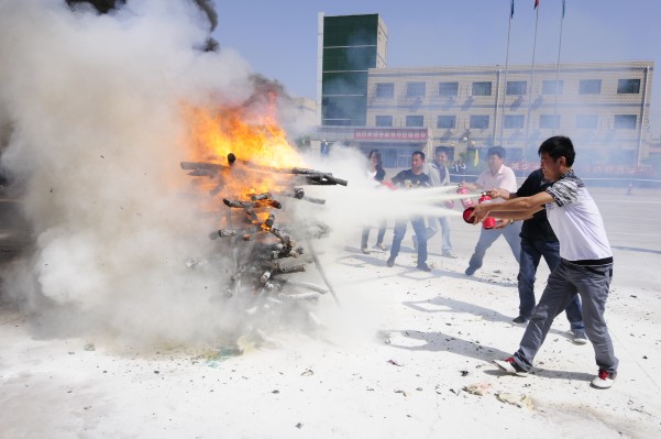 部門經(jīng)理練習使用滅火器