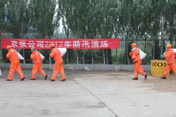 6月28日,公司針對影響安全生產(chǎn)的惡劣天氣,開展了路基路面水毀應急演練。演練于當日上午9時開始。巡查車輛于9 時 20分在巡查過程中及時發(fā)現(xiàn)模擬險情,立即向公司防汛保暢辦公室進行匯報。防汛保暢辦公室接報后,立即報告總指揮和副總指揮,同時立即向上級主管部門報告險情。公司防汛應急預案啟動,防汛突擊隊按照搶險方案在路基水毀處進行了搶險。此次演練參與人員44人,調(diào)運水泥2噸、沙袋100個、黃砂2車、裝載機2臺、翻斗車4臺。上午11點30分,防汛應急演練完成,演練過程中應急搶險人員能熟練掌握應急處置方案,演練達到了預期效果,保證了京張高速的全線暢通。(工程部)
