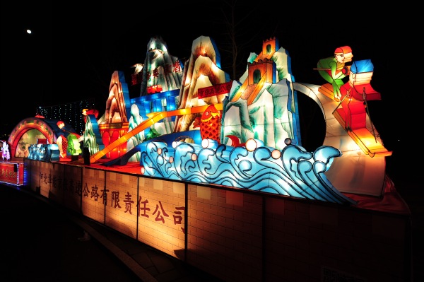 在燈展上,來自京張公司的主題為“喜迎冬奧,和諧京張”的大型展臺(tái),以獨(dú)特的造型和璀璨的光影效果,吸引眾多游人駐足觀看。展臺(tái)長(zhǎng)10米,寬2米,高5米,底座以長(zhǎng)城墻體為支撐,以雞鳴山為背景,以高速大橋?yàn)檫B接。雞鳴古驛,祥云仙鶴圍繞,山水相連,官廳湖鯉魚歡躍,寓意風(fēng)調(diào)雨順、年年有余;雄偉的官廳湖特大橋如長(zhǎng)虹臥波,是通往北京的重要交通樞紐,也是連接京張兩地的情感之橋;展臺(tái)主體兩側(cè),滑雪健兒從崇山峻嶺上滑躍而下,代表當(dāng)?shù)厝嗣駸釔郾┻\(yùn)動(dòng)。整個(gè)展臺(tái)充分表現(xiàn)了當(dāng)?shù)氐牡乩硖攸c(diǎn)和歷史文化氛圍,在烘托熱烈祥和的節(jié)日氛圍的同時(shí),也表達(dá)了京張兩地共盼冬奧的熱切心情。(何文儒/文,李 勇/圖)