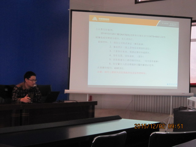 本次培訓邀請河北安信保險經紀有限公司專業(yè)人員對保險業(yè)務知識進行了講解,并向各部門、各站區(qū)發(fā)放了保險服務指南。公司各部門、各站區(qū)負責人、理賠聯(lián)絡員及保險公司業(yè)務人員參加了本次培訓。