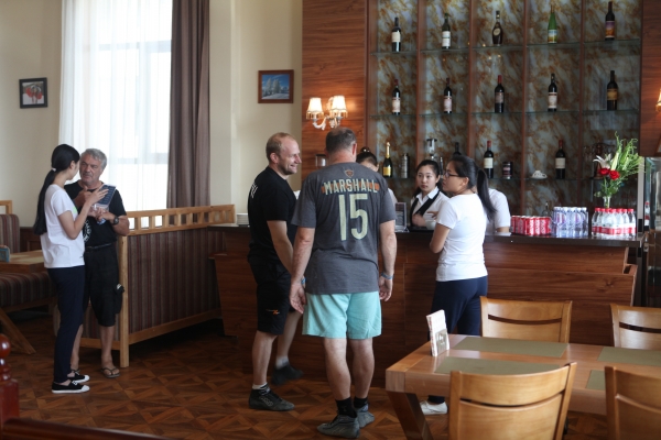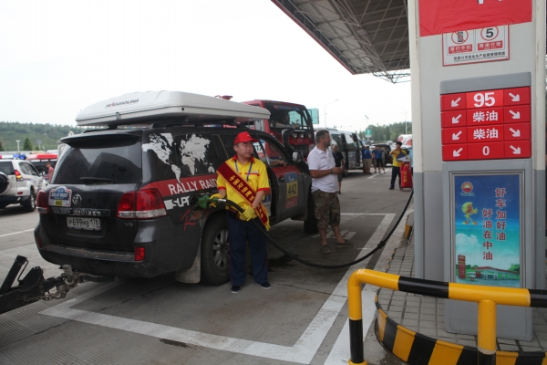 上午8點許,伴隨著陣陣賽車發(fā)動機的轟鳴聲,比賽車隊駛?cè)敕⻊諈^(qū)進行短暫停留。公司接待小組成員提前在各自崗位等候,保安、餐廳和加油服務人員各司其職,配合公安武警開展停車引導、飲水和加油服務。在咖啡廳,賽車手們喝上了熱咖啡,超市和餐廳門前也提供了飲用水,忙碌有序的加油站旁邊,剛切開的西瓜為選手所青睞……廣播里傳出了悠揚的俄羅斯民歌,給長途奔波的選手們送去了鄉(xiāng)音的慰藉。這些來自遙遠異域的粗獷的賽車手們,紛紛豎起拇指,表達對中國人民熱情接待的謝意。