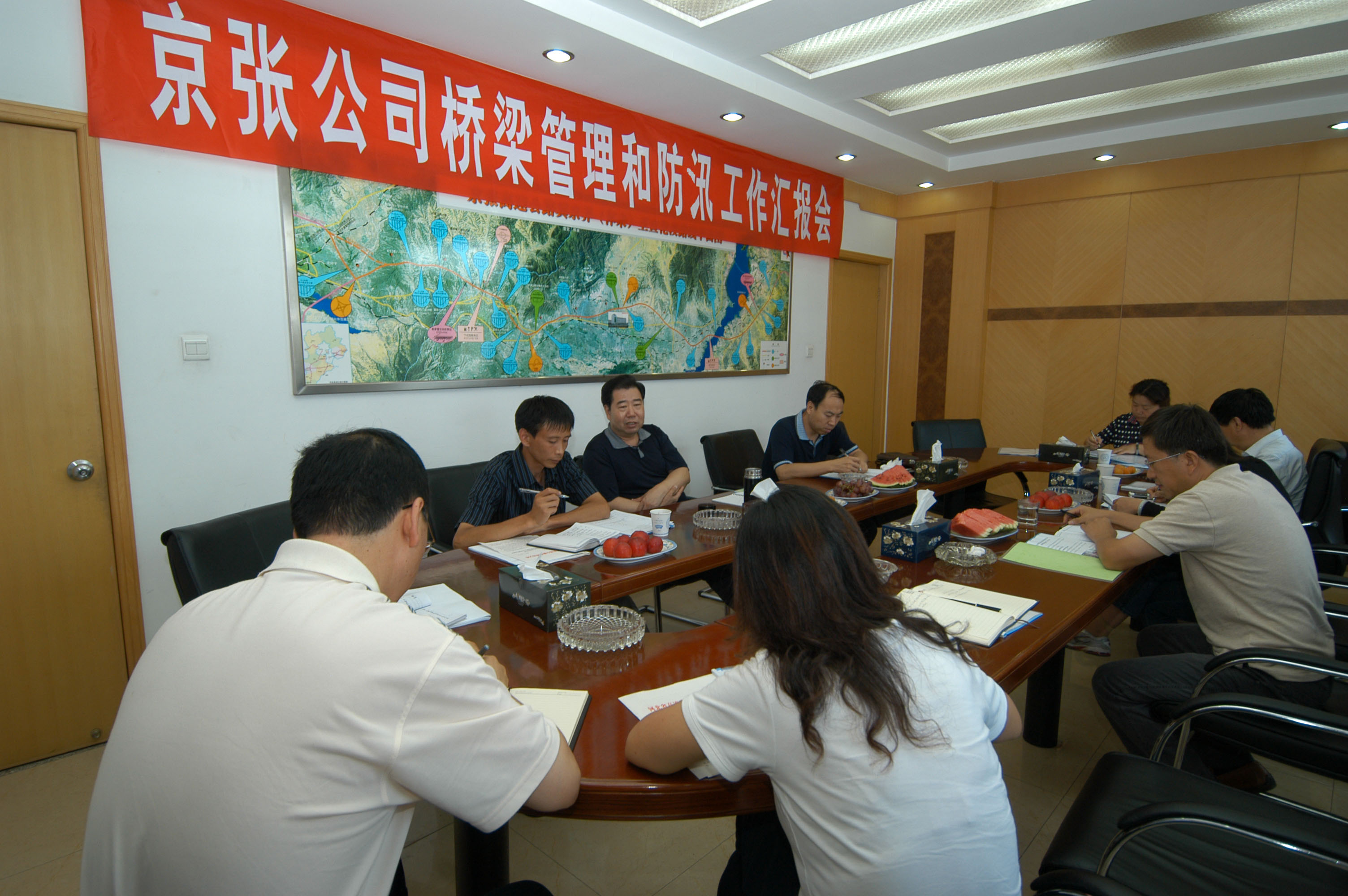 檢查組先后對(duì)官?gòu)d湖特大橋、周家溝大橋等重要橋梁進(jìn)行了現(xiàn)場(chǎng)檢查,并聽(tīng)取了公司橋梁管理和防汛工作匯報(bào)。檢查組對(duì)此表示肯定,認(rèn)為京張公司橋梁管理工作細(xì)致,路面施工安排合理,橋梁檢測(cè)工作到位;下一步要繼續(xù)加強(qiáng)橋梁管理工作,千萬(wàn)不能掉以輕心,尤其要注意加強(qiáng)橋梁支座的檢查和維護(hù),同時(shí)還要加強(qiáng)其它中小橋的管理;防汛工作要以預(yù)防為主,與協(xié)作單位加強(qiáng)溝通,協(xié)調(diào)聯(lián)動(dòng),做好防范應(yīng)對(duì)工作。