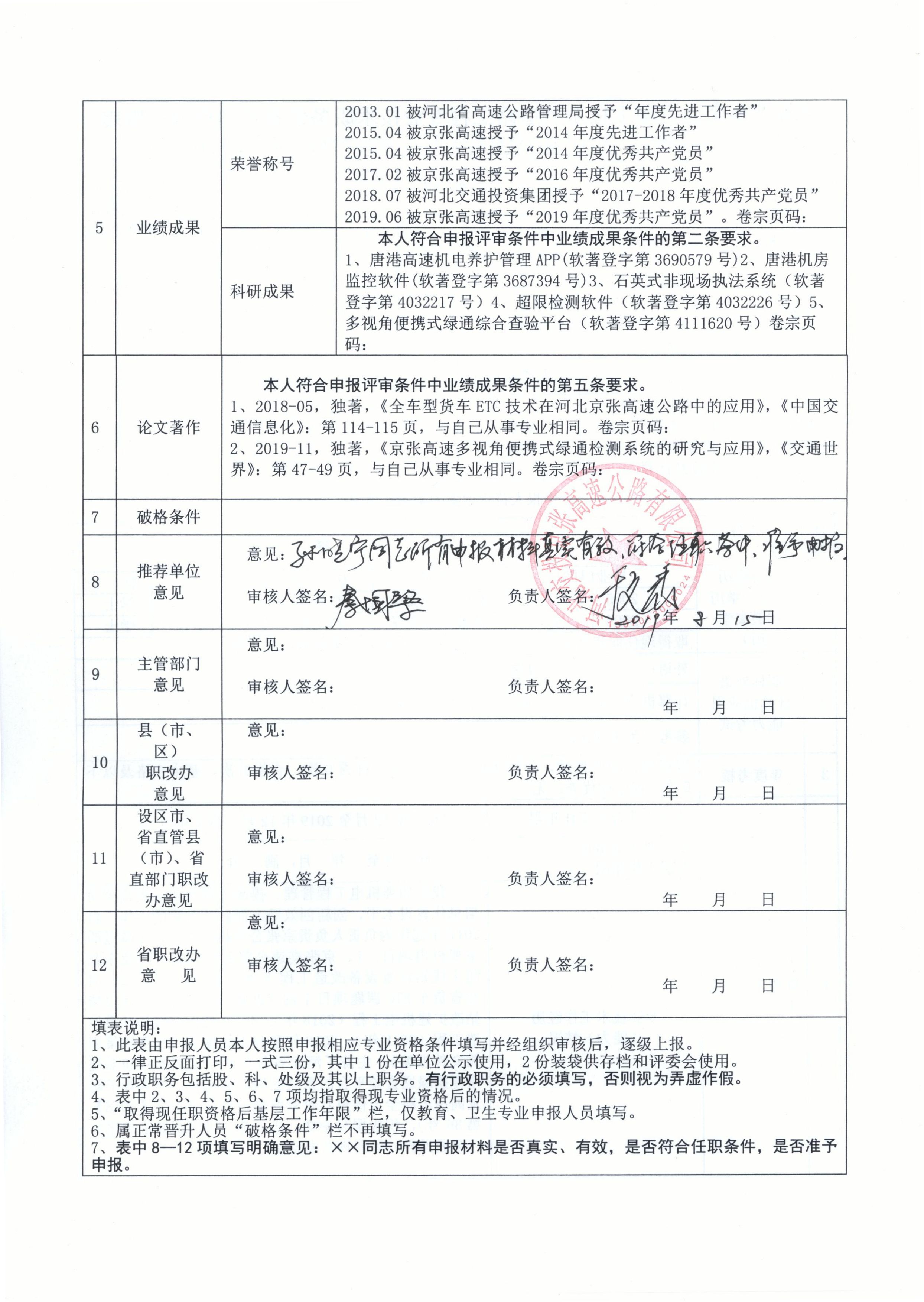 河北交投京張高速公路有限公司2019年度職稱申報人員基本情況公示